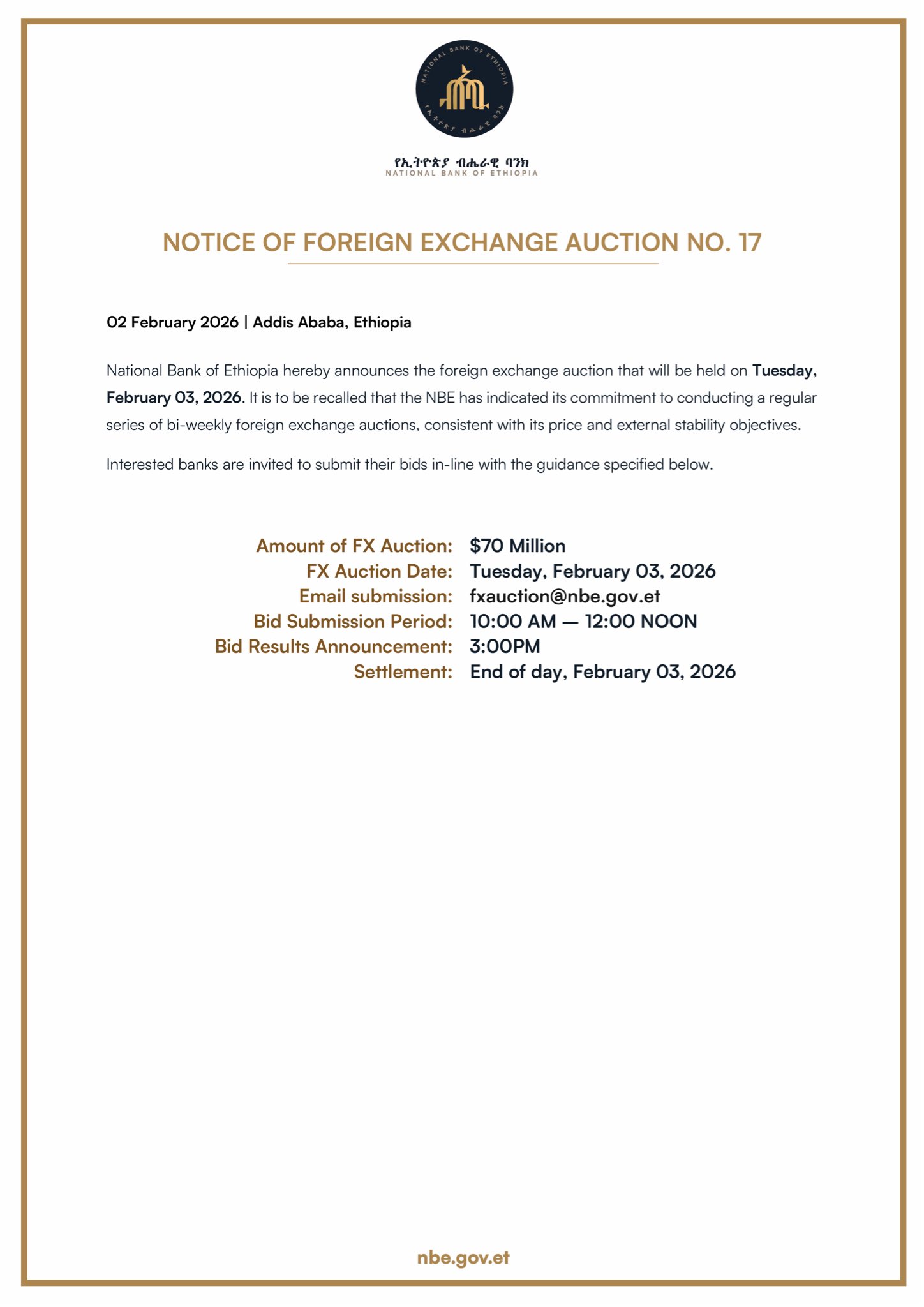 Email submission: fxauction@nbe.gov.et